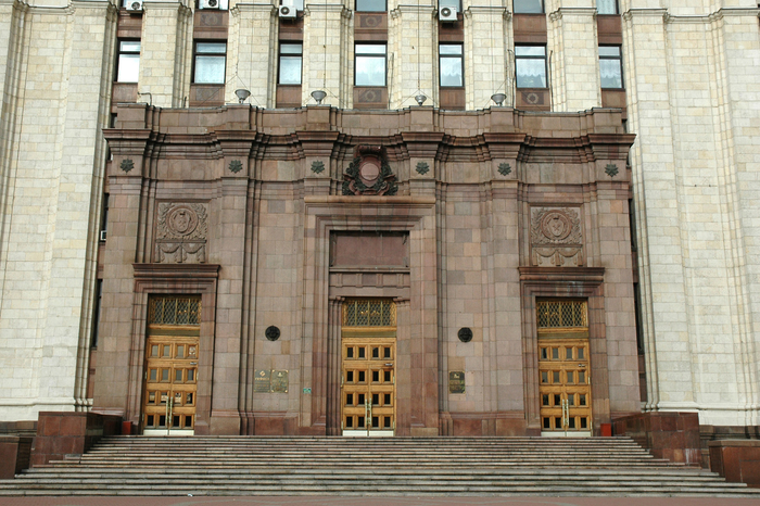 Здание МИД в Москве — единственная сталинская высотка, на шпиле которой нет звезды. Изначально появление шпиля было под вопросом, но позже он все же был запланирован и смонтирован. Высота этого здания 172 метра. Еще одна его особенность, помимо отсутствия шпиля, — это огромный герб СССР площадью 144 кв.м.