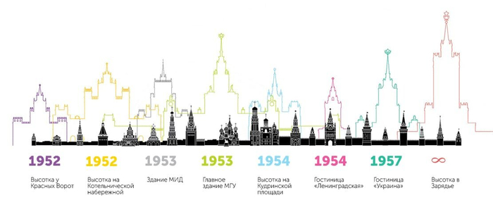 Высотки стали признаком возрождения страны после нескольких лет войны и ответом на похожие западные проекты. Во многом схожие высотки имеют и определенные отличия, в том числе и по назначению, представляя собой жилые, административные и гостиничные здания.
