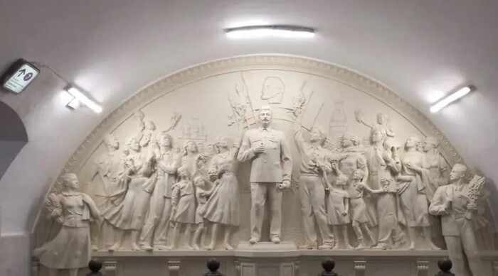 Неизвестные похитили восстановленный барельеф с изображением Сталина со станции метро «Таганская»