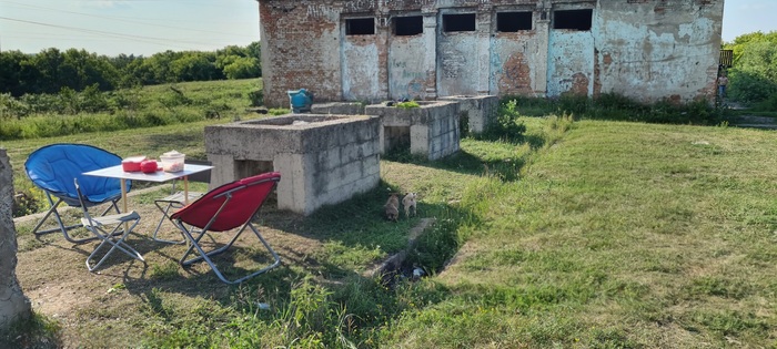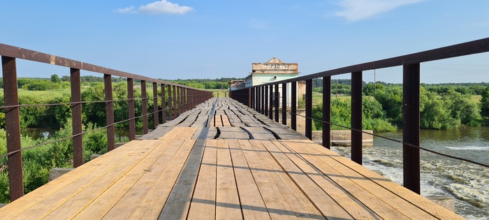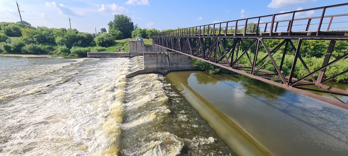 Мы подъезжали к ГЭС со стороны Боровой, так было ближе из Тогучина. Есть еще путь через Киик. Устроили небольшой пикник. Количество мошек было запредельное в том месте, поэтому ели, бегая вокруг стола. Такой "фуршет в динамике"😂 К нам прибегали двое щенков. Это местная молодежь ходит сюда купаться, с ними и пришли. Ребята отчаянные, прыгают с берегов в воду. А мне просто по мосту пройти страшно было: всё гудит и трясется под ногами. За мостом следят, доски периодически обновляют.