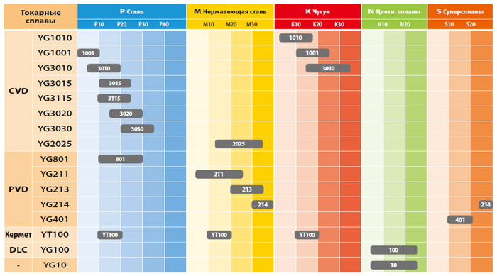 Раз зашла тема про стружколомы, разовьем тему про сменные пластины, а именно про сплавы. Их так много, что не все понимают какие именно нужно выбирать и по каким критериям. Если открыть каталог любого производителя, то можно увидеть примерно такую картину: