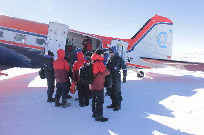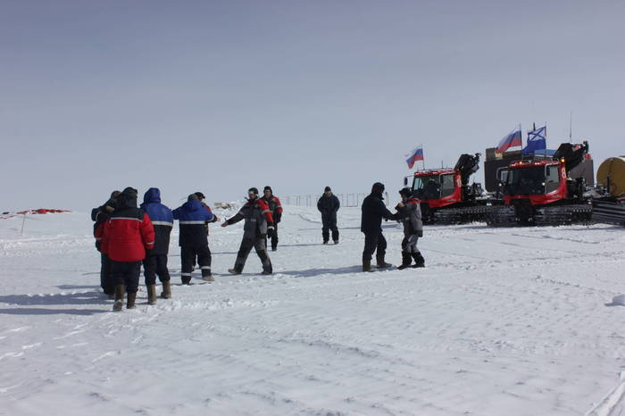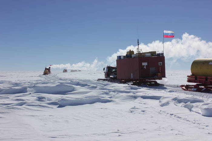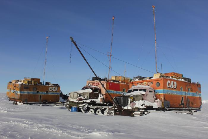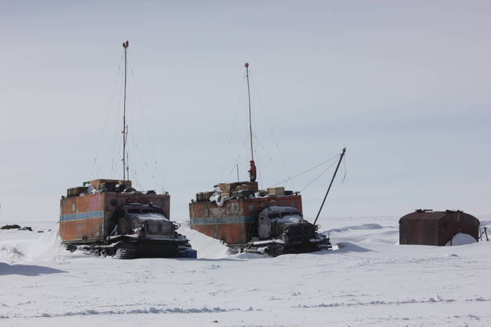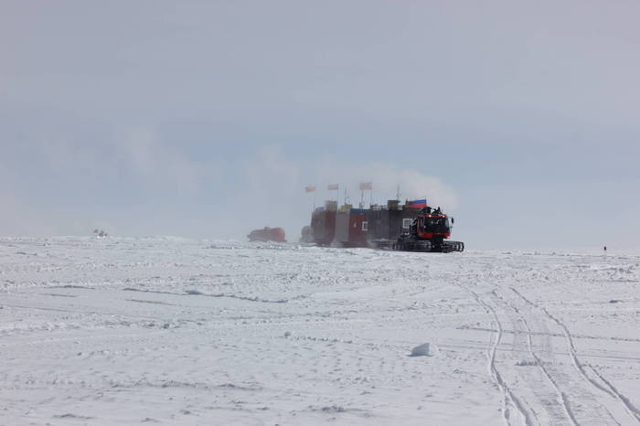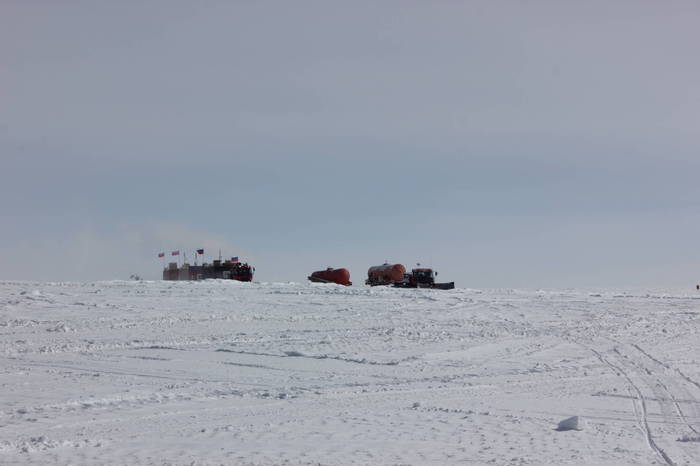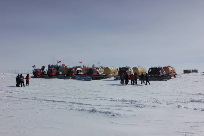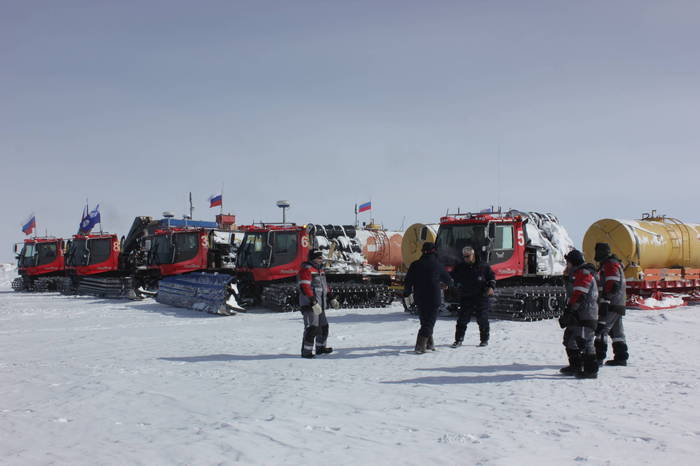 Поход собирается на Прогрессе, около аэродрома. Раньше центром антарктической логистики был Мирный, однако дорога с Мирного до Востока крайне опасна по причине большого количества ледниковых трещин. Дорога с Прогресса проходит по практически монолитному куполу, а, стало быть, риск провалиться в трещину сведён к минимуму.