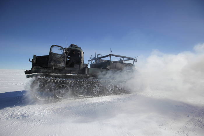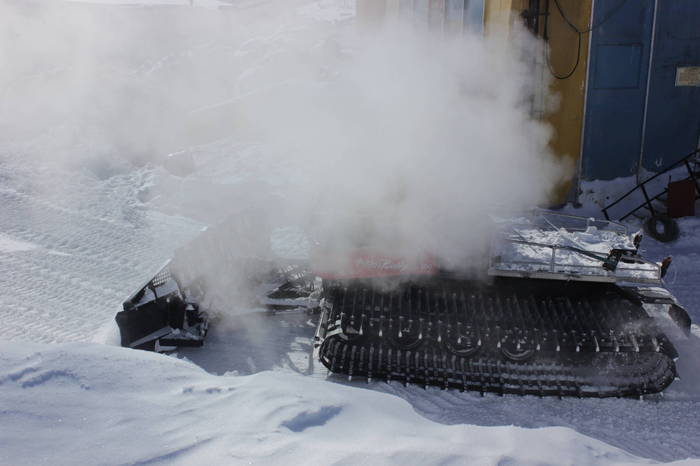 Гидравлика очень плохо переносит морозы. В первый в этом году СГП на Востоке работы по расчистке станции от снега полностью выполнены не были именно по этой причине -- а ведь тогда было лишь чуть за тридцать! К слову, в первый СГП на Восток одна из машин вышла из строя, и осталась лежать вдоль трассы между станциями, занесённая снегом. Во второй СГП вышли из строя уже две машины потому что на них ехал Юрец. Неприятно, конечно, но это обычное дело в Антарктиде. Привет, @Alkvalond!