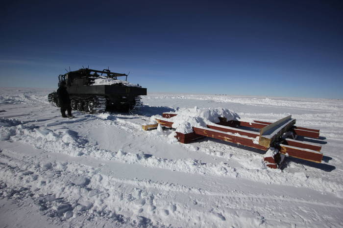 Полозья балков (и саней) массивны, нижняя поверхность покрыта каким-то пластиком, чтобы они меньше примерзали к Антарктиде.