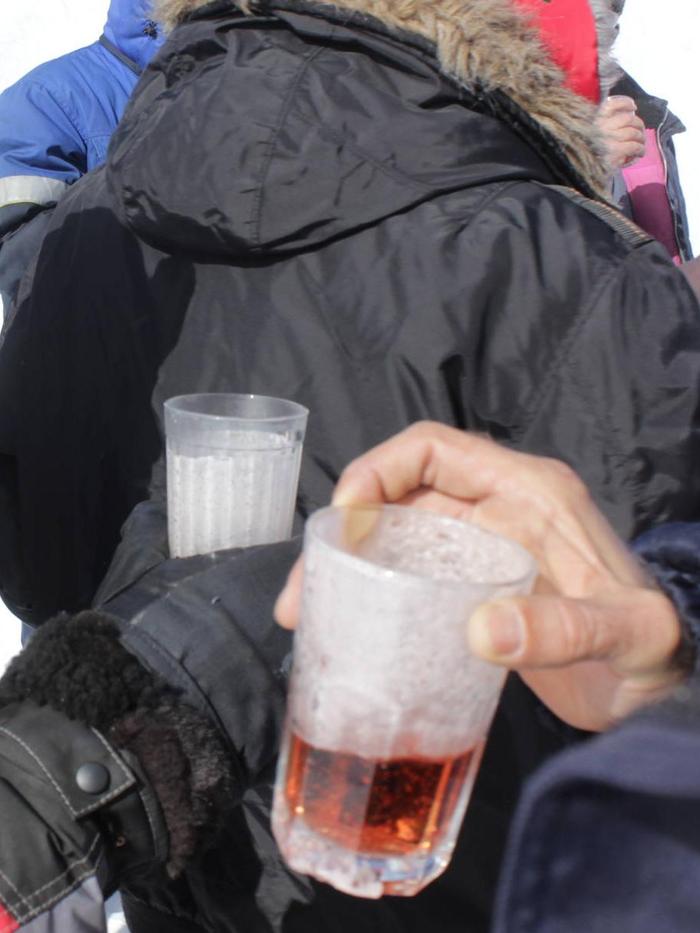 Далее контейнер разбирается, и замороженные продукты укладываются в выкопанную в снегу яму. На поверхности ледника, невзирая на то, что он ледник, плюсовая температура, поэтому заморозка к моменту старта похода может прийти в негодность. Главное -- не забыть, где яма находится.