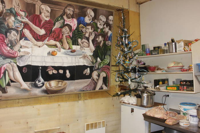 Вещи и продукты, не подлежащие заморозке, грузятся в обогреваемый балок-склад. Он как раз за жилым.