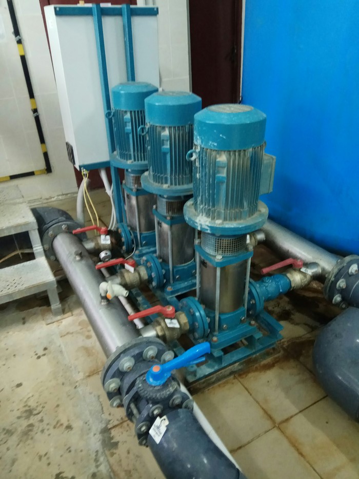 Далее идут 3 насоса, которые работают через частотный преобразователь и качают уже чистую воду в центральную систему.