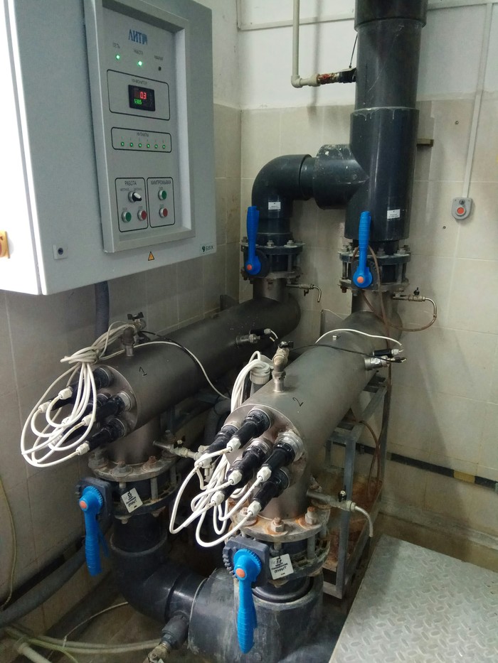 Но ещё перед выходом воды со станции происходит бактериологическая очистка УФ. В каждой из установок( их две) находится по 6 УФ ламп.