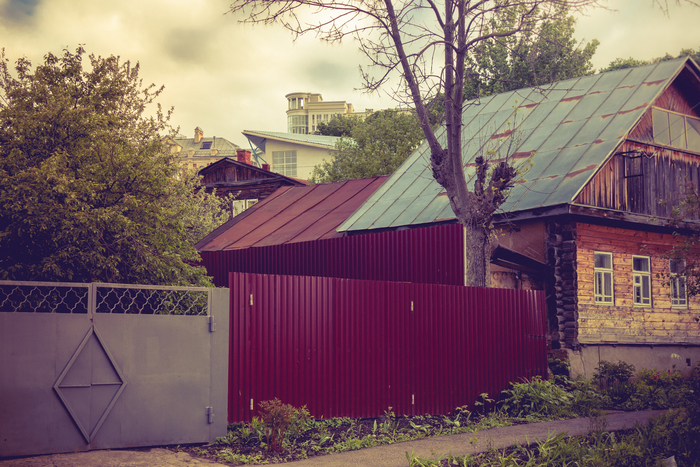 Да, это новодел, но это очень удачный пример воссоздания деревянного здания. Важно понимать: дом Терпигоревой сгорел, и его восстановили именно как сруб — а не превратили в «монолит под дерево», как это сделано напротив, пусть даже и при участии «титулованного архитектора».