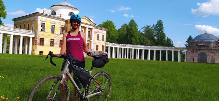 Но в Старице есть только одна гостиница, и на выходные она бронируется очень заранее. После 76 км на веле продолжать путь далеко я не могла и забронировала поэтому гостевой дом в ближайшем возможном месте - деревне Родня в 19 км по раздолбанным остаткам дороги.