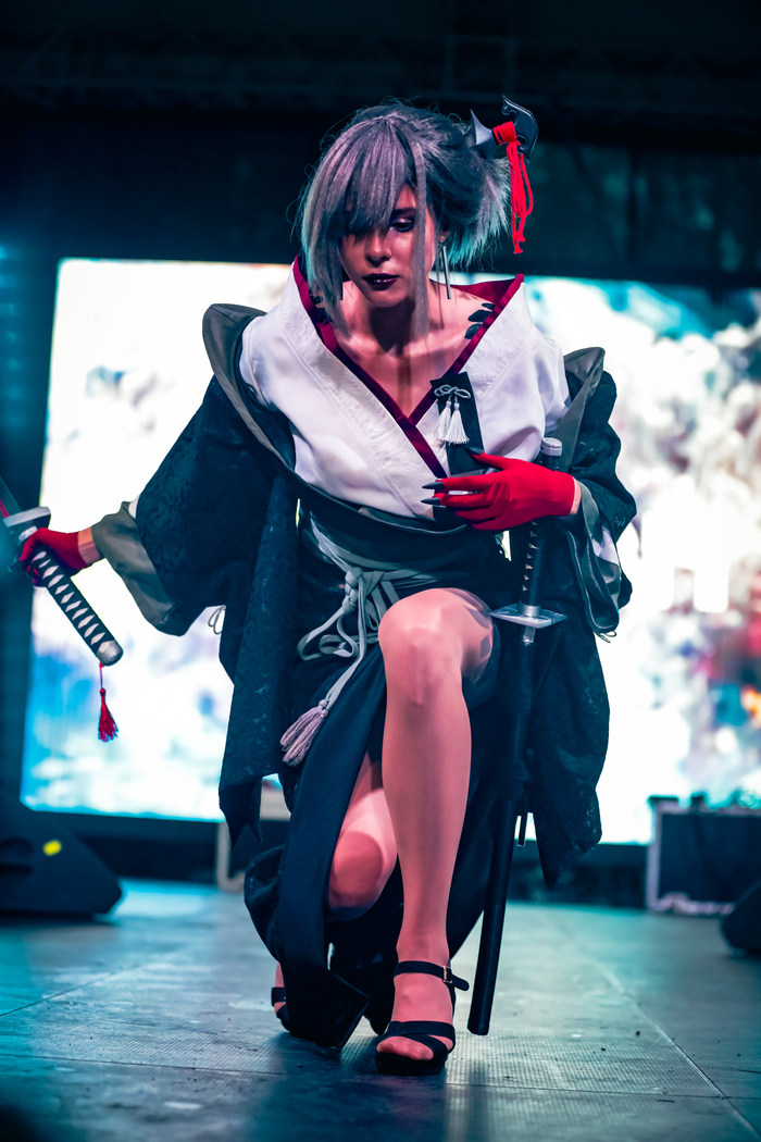 Так как мероприятие про косплей, мне кажется, это был один из интересных посетителей, который визуально хорошо вписался в концепт всей игры и стенда. Могу сказать, что достаточно еще и хорошо, уверенно играл.
