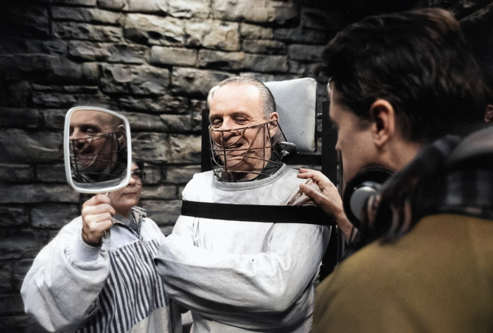 Энтони Хопкинс во время съемок фильма "Молчание ягнят", 1991 год.