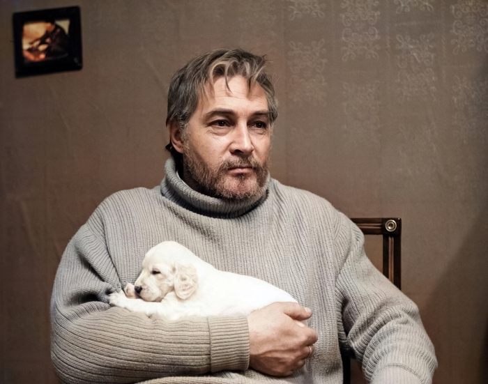 Вячеслав Тихонов с собакой в фильме — Белый Бим Чёрное ухо, 1976 год.