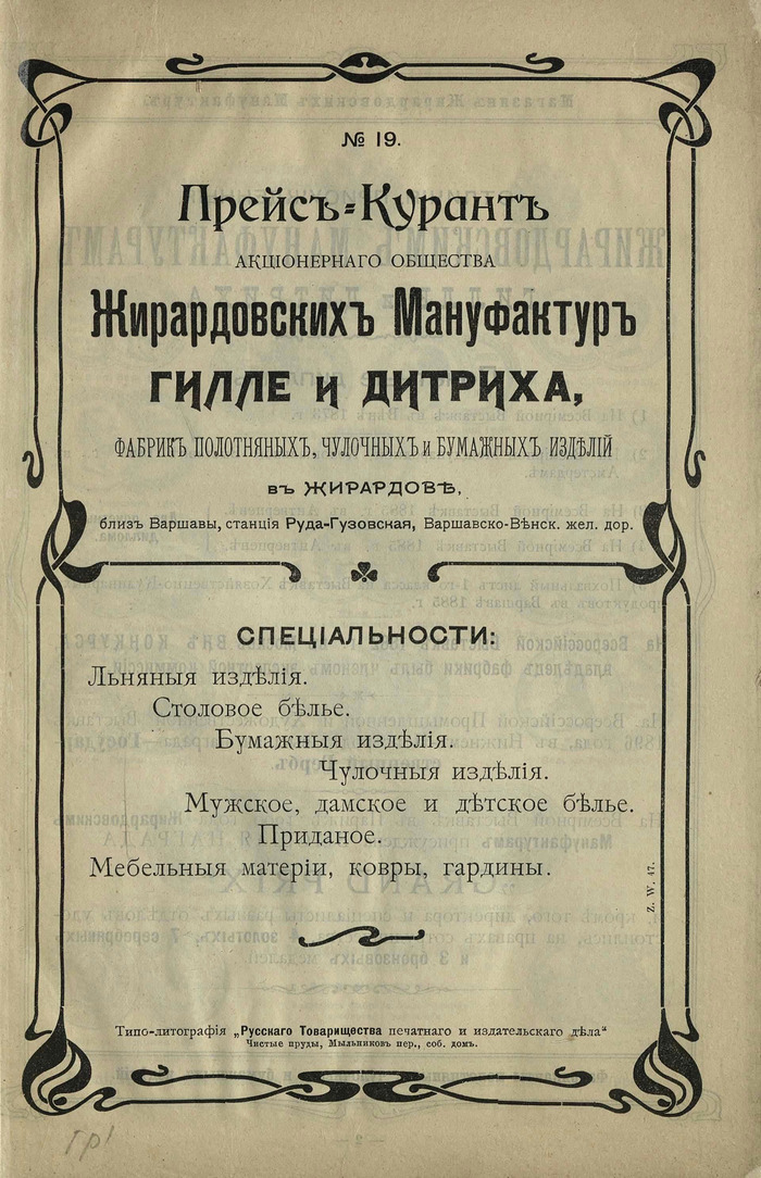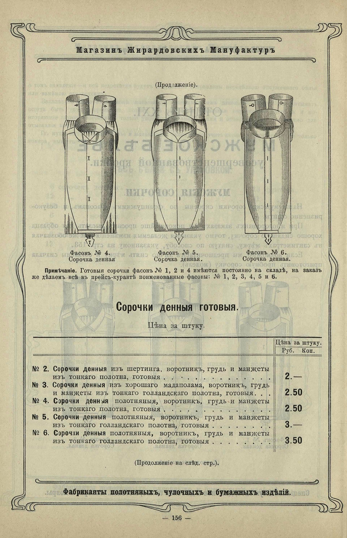 Прейскурант полотняных, чулочных и бумажных изделий в Жирардове 1905 год
