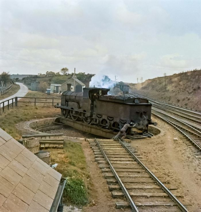 Поворотный круг требовал усилий как минимум двух человек, но второго не видно из-за паровоза.