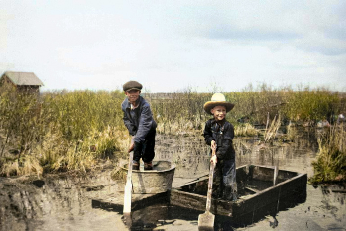 Сплав по болоту. Альберта, Канада, 1938 год.