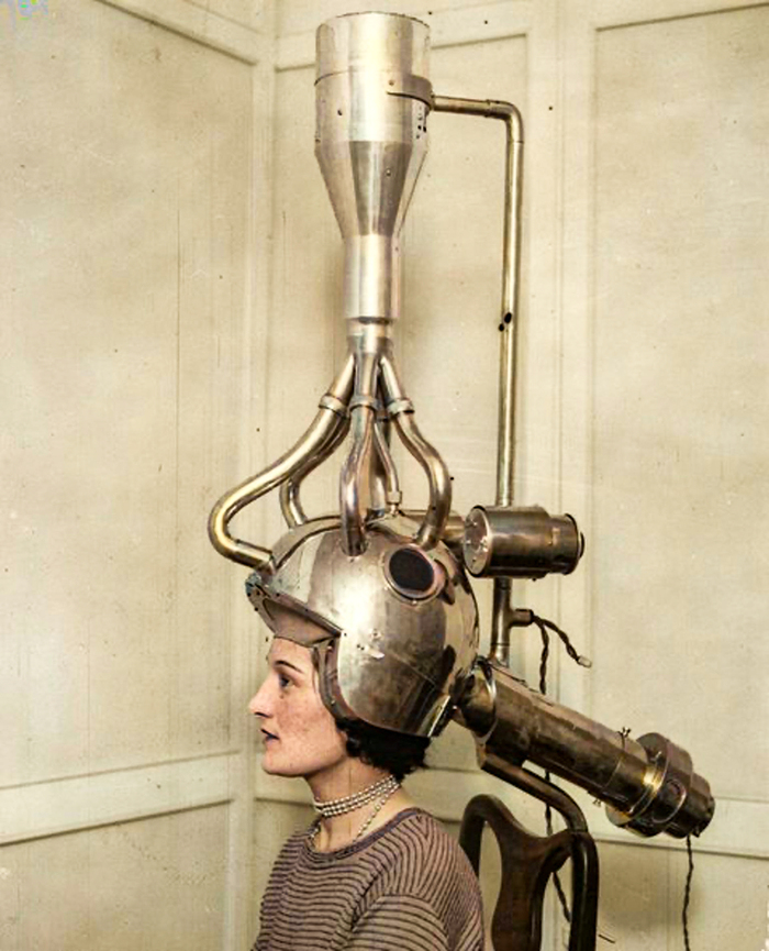 Девушка сушит волосы феном. Австралия, 1930 год.