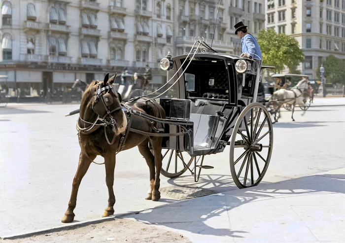 Конный экипаж. Мэдисон-сквер, Нью-Йорк, конец XIX, начало XX века.
