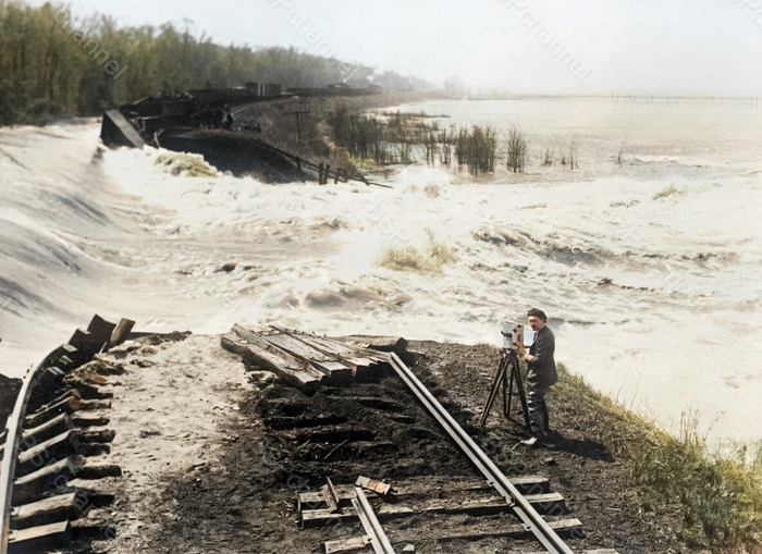 6. Зеваки наблюдают за спуском на воду колесного теплохода. США, Мичиган, 1912 год.