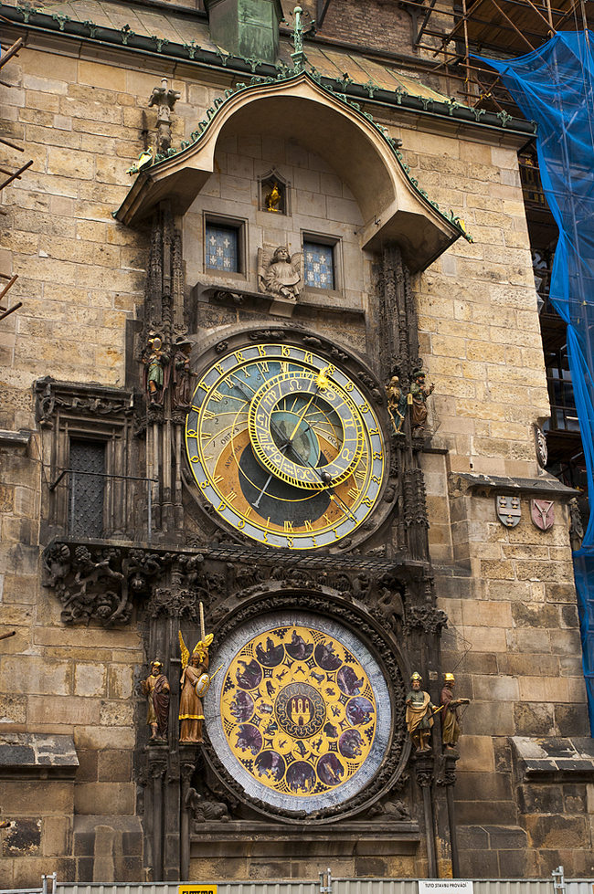 Центральный циферблат имеет астрономическое назначение. Он демонстрирует звездное время, время восхода и захода Солнца, лунные фазы, а также время (не только актуальное в Центральной Европе, но и старочешское, и вавилонское).