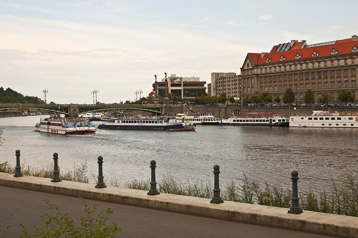 Главное украшение Карлова моста — это 30 стоящих вдоль парапетов скульптур в стиле барокко. Они изображают чешских святых и легендарных личностей. Самая знаменитая — бронзовая фигура Яна Непомуцкого, небесного покровителя Чехии. По этому средневековому мосту мы гуляли каждый день, как приехали в Прагу, так как это очень близко к нашей гостинице. Но до этого приходили сюда только вечером. И сегодня наконец удалось разглядеть его при свете дня, увидеть уличных художников, рассмотреть реку Влтаву. Некоторые места здесь так и называют - Пражской Венецией.