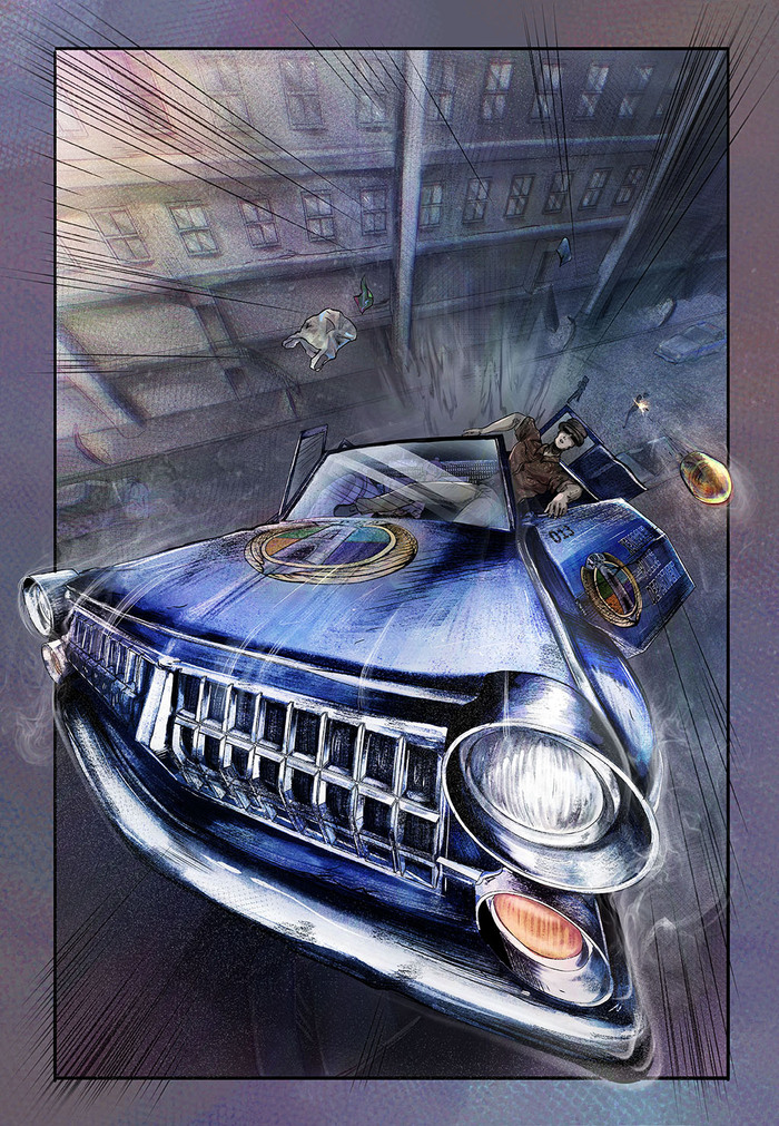 Колорист, когда получается страницу, сперва накидывает базовый покрас, т.е. заполняет сплошным цветом большие области. Далее добавляет тени, блики, детали, затем следует пост-обработка, добавляются шум, текстуры, эффекты. Работа, которая иногда кажется незаметной, это кропотливый труд, запросто сжирающий 6-10 часов на одну страницу. Раньше это делали вручную, и это был адский труд, практически без права на ошибку, но сейчас, конечно, все делается на компьютере. Чуть попроще, но не сильно.