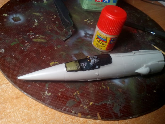 О создании: Как всегда сборка на сверхтекучий клей от Тамии, кое-что паялось обычным звездовским. Интерьер кабины, ниши шасси, внутренности сопла красились во время сборки.