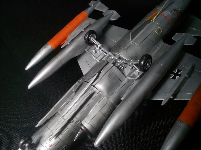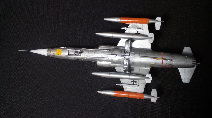 Представлена модель Lockheed F-104G Starfighter с двумя парами внешних топливных баков из состава JaBoG 31 Boelke, т.е. 31-го Тактического Авиакрыла Люфтваффе имени аса Первой Мировой Освальда Бельке, первого соединения Люфтваффе, принявшего Старфайтеры на вооружение. Авиабаза Нервених, Западная Германия, 1962 год.