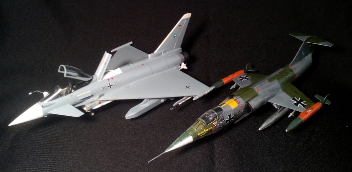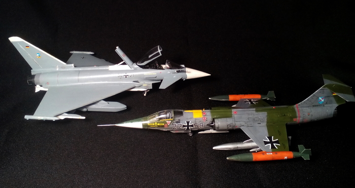 (На последних фото) Lockheed F-104G Starfighter и его преемник в Люфтваффе Eurofighter EF2000 Typhoone (старая крашенная кистью модель, но если вдруг интересно, пост вот тут)