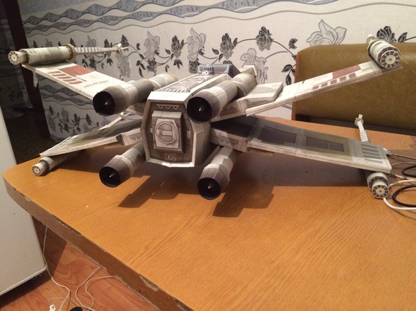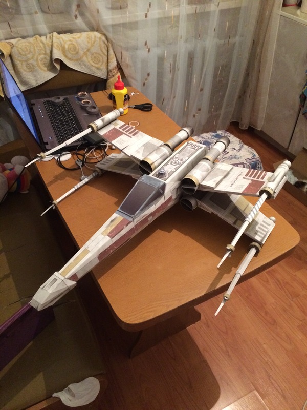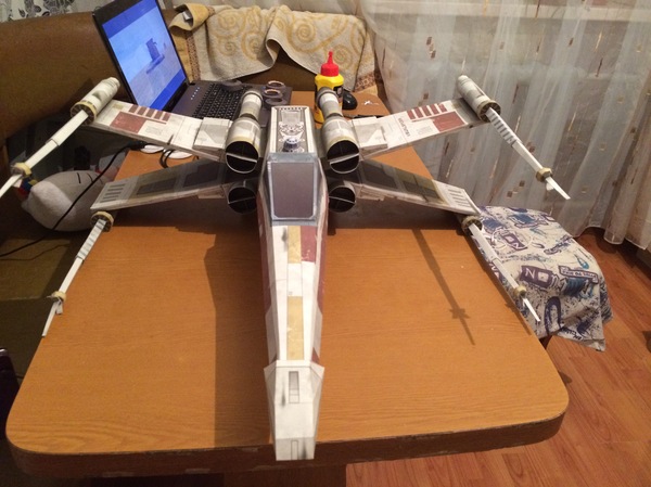 С этими деталями Старфайтер "ожил". Сзади на фото попал стаканчик вовсе не апельсинового сока, если вдруг кто так подумал.