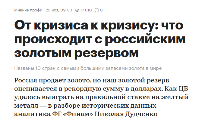 Правда ли, что Россия распродает золотой резерв для покрытия дефицита военного бюджета
