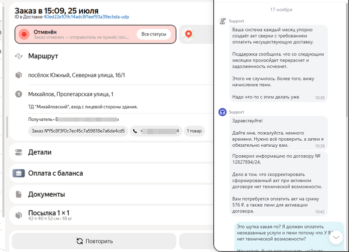 Яндекс Доставка требует оплату за доставку, которой не было1