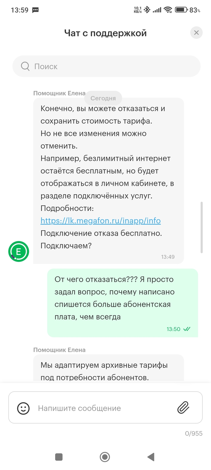 Не могу сказать, что удивлен, однако опсосы не сидят на месте и выдумывают всё новые и новые охуительные ходы. Я давний абонент, что-то около 17 лет и в целом, когда связь в городе стала стабильной, решил не метаться от одного поставщика к другому и остаться клиентом Мегафона. Заметил такую штуку, как только оператор начинал невыносимо хотеть больше денег, он старался делать это плавно и незаметно, как профессиональный фокусник. Т.е. архивные тарифы долго не трогал (может есть что-то в договоре юридически значимое, мне искать лень), были звонки с предложением перейти на новый, более пиздатый, бесконечно удобный и главное современный тариф, всего то на пару соток дороже того доисторического дерьма, на котором ты сидишь. Оказалось, что я отвратительный старомодный клиент, меня и на прошлом тарифе всё устраивает, а главное не требует переплат, ведь для меня это статья постоянных расходов. В общем, несколько лет назад, опсос таки отъебнул для старомодных архивные тарифы и принудительно перевел на новые (формулировка тариф больше не обслуживается или подобная херь). Разница была невелика, но про себя подумал, что всё таки тактика верна, всё новое дороже, но не несёт особых преимуществ, и все эти свистоперделки с баллами, мегасилами и переносами гигов, по факту мелочь, требующая контроля, а мне есть чем себя занять. Где-то в августе, заметил что у меня вместо 35гб трафика, появился значок бесконечности, типа безлимит о котором я не просил. Забил, так как мне до одного места, хвала WiFi дома, на работе и в большинстве мест где бываю. Этой осенью, испытывая дикий голод, мегафно вновь предложил переход на тариф, который был даже дешевле моего архивного, но когда я проигнорировал реновацию, сделал вот так (см. скриншот).