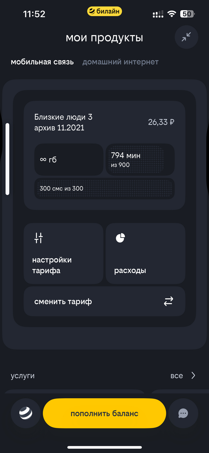 Давно являюсь клиентом Билайна, был тариф с безлимитным интернетом и с кучей минут. Пару раз в год повышали стоимость не на много, к чему я относился с терпением. Вот тариф на скриншоте.