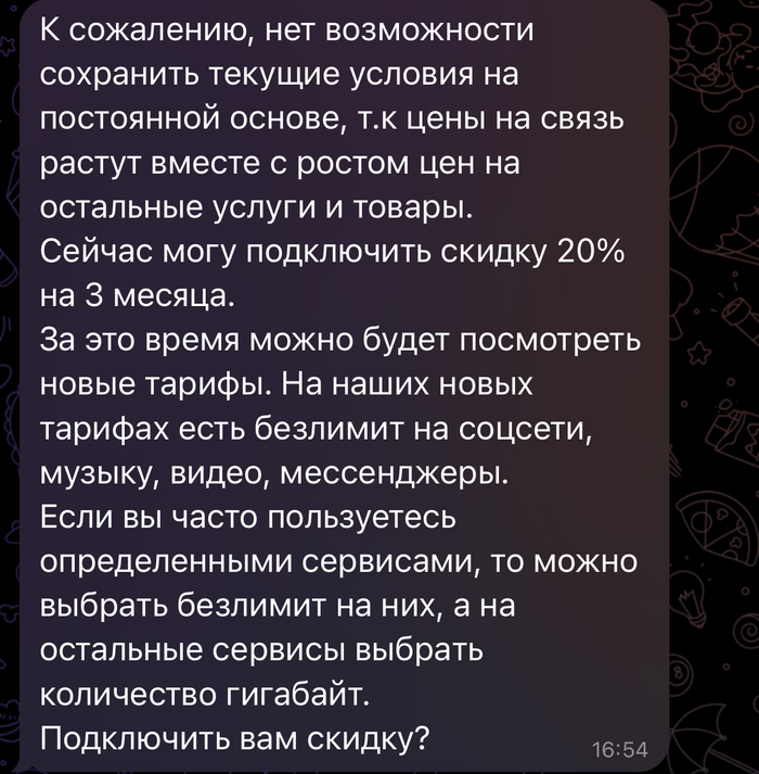 И мы, говорит, предлагаем вам персональный тариф, с ещё более выгодными условиями, и он у вас сохранится НАВСЕГДА, не уйдёт в архив, и все условия и бонусы остануться с вами.