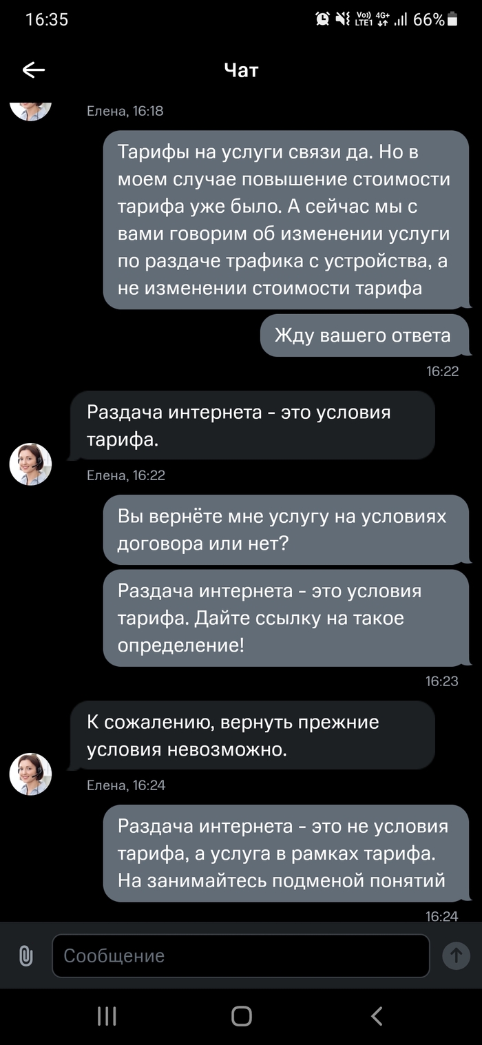 Я: Хочу услугу как было заявлено. Или старый тариф верните.