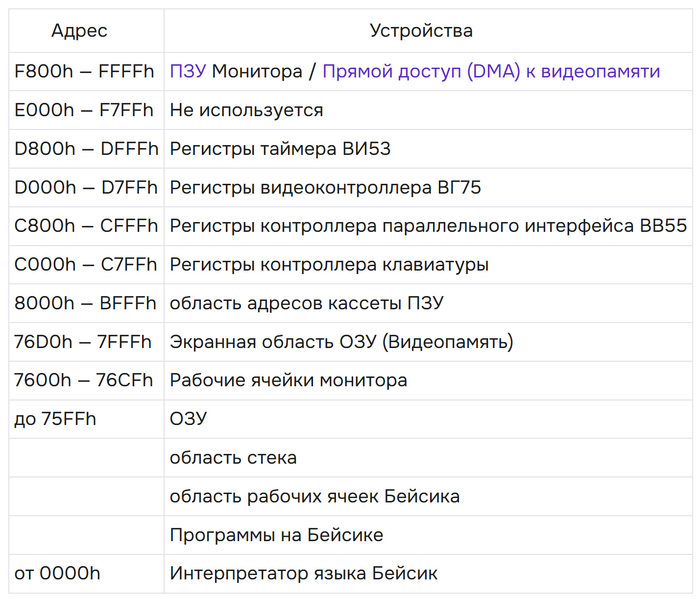 Программа встроенного Монитора изменена с учётом вышеперечисленных отличий. Также в ней отсутствуют некоторые функции ввода-вывода, имевшиеся в РК.