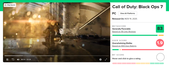 Не помогли и отзывы. На Metacritic пользовательский рейтинг Black Ops 7 рухнул до рекордно низкой отметки — всего 1,9 балла. Игроки критикуют короткую и мягко говоря не самую удачную кампанию, спорные решения в мультиплеере и использование сгенерированных ИИ‑материалов. Battlefield 6 тоже не избежал претензий, но в целом восприятие оказалось куда более позитивным: проект Electronic Arts воспринимается как возвращение серии к своим сильным сторонам.