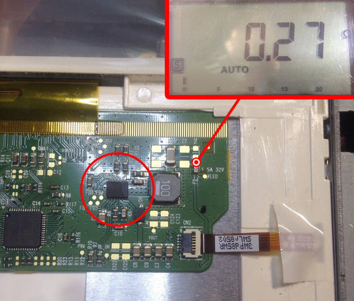 Греется драйвер подсветки ADD5207. Меняю его на рабочий донорский и ставлю