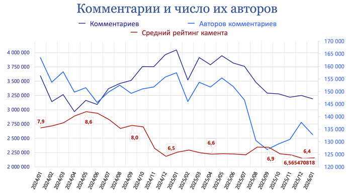 За все время авторов комментариев стало 2 079 354 (на 9 116 больше к предыдущему месяцу).