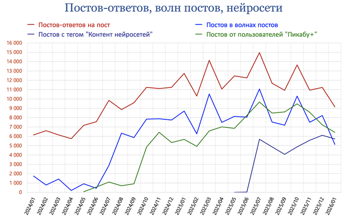 Постов-ответов на пост написано 9 161 (9,8%, на 18% меньше к предыдущему месяцу).