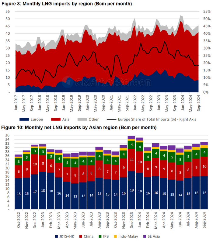 Поставки по трубопроводам из России (В Европу) выросли с 7,2 млрд куб. м в третьем квартале 2023 года до 8,1 млрд куб. м в третьем квартале 2024 года, увеличившись на 0,9 млрд куб. м (13%). Прогнозируется, что до конца 2024 года продолжатся устойчивые поставки. А потом? А потом пока никто не знает.
