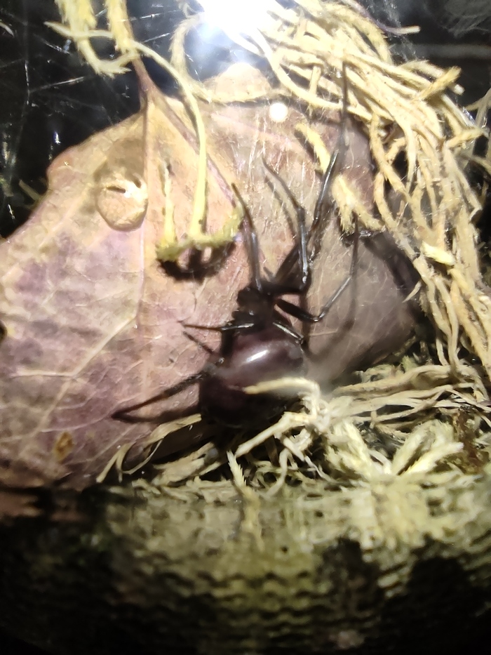 У самцов есть одна особенность - они умеют стрекотать! Звук немного похож на пение сверчка, используется для брачных ритуалов. Дело в том, что если самец, без предупреждения, ввалится в паутину к самке - слепошарая невеста может принять жениха за вкусняшку и ухажер имеет неиллюзорные шансы "войти в неё" не в эротическом смысле, а буквально, целиком и через рот. Романтические серенады самец исполняет с помощью своих цимбиумов - мужских совокупительных органов, ибо в хороших педипальпах и хрен - балалайка. Пенис паука в боевом положении представляет собой полую, гибкую хитиновую иглу для доставки спермы в мягкотку: