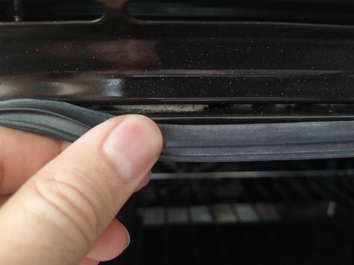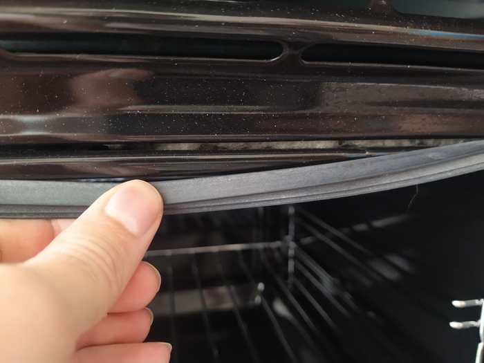 При осмотре духовки было обнаружено за уплотнительной резинкой двери неравномерное количество стекловаты(?).