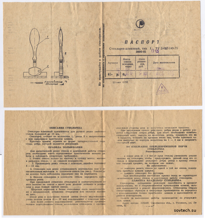 Ну и в бумагах деда нашелся паспорт от этого стеклореза.