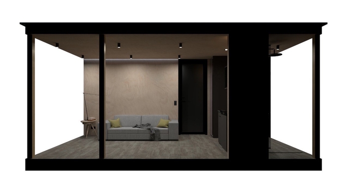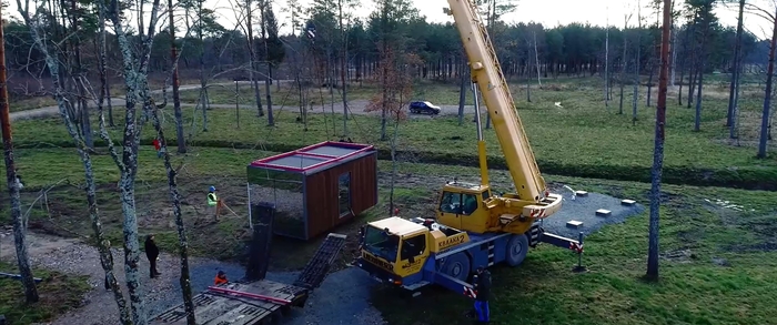 Этот проект строят и ставят на турбазах. Этот проект поставляется готовом виде и остается только подключить к электричеству, воде и канализации. Его доставляют на трале в готовом виде и разгружают уже на фундамент.