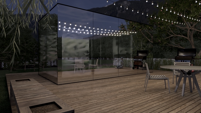 Если позволяет территория то вокруг можно сделать террасы, поставить купель, сауну,небольшой бассейн.
