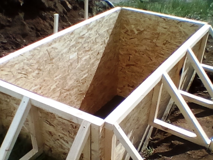 7. Опалубка не из досок а из собранного щита из ОSB-плит и бруса 50х50.