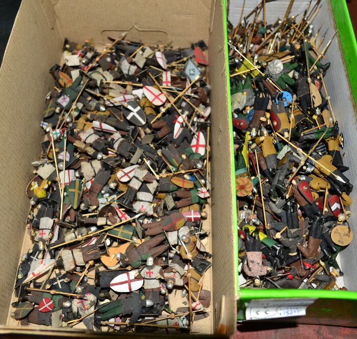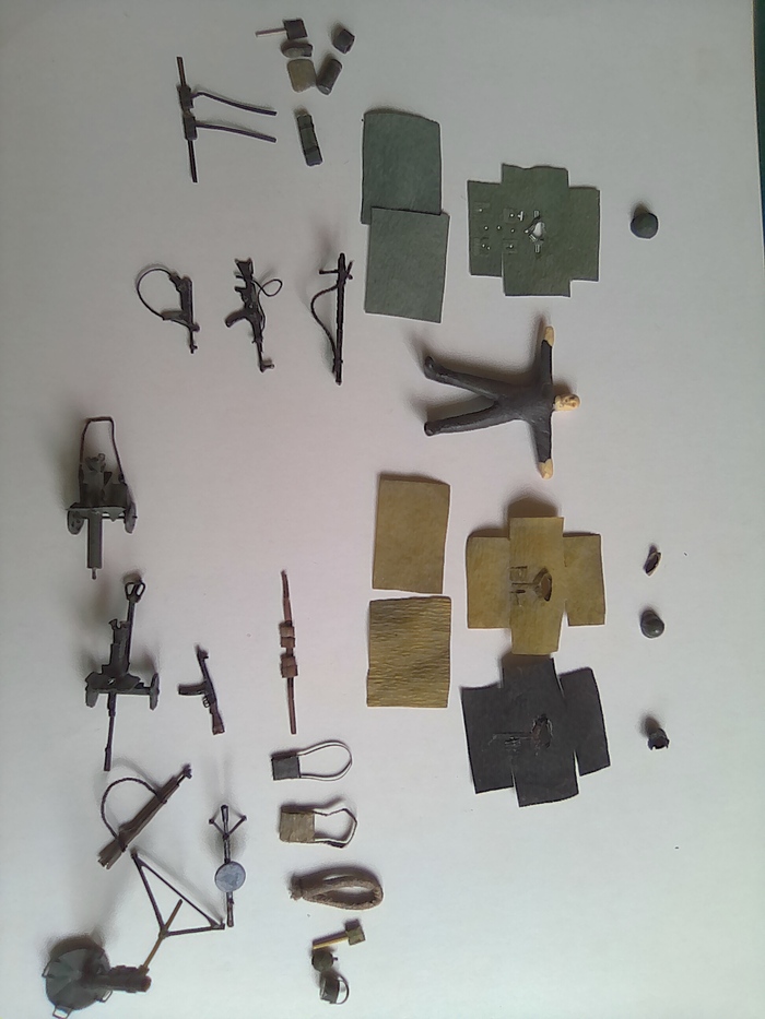 Пример из чего сделаны солдаты, комплекты формы Вермахта (слева) и РККА (справа) с оружием . Вся экипировка выполнена мною, шлемы формируются из алюминия методом штамповки, Фома окрашенная бумага, газбак, кателок, оружие- алюминиевая фольга. Тело солдата -пластилин (я не скульптор анатомия солдатиков конечно не идеал).
