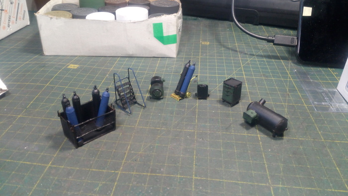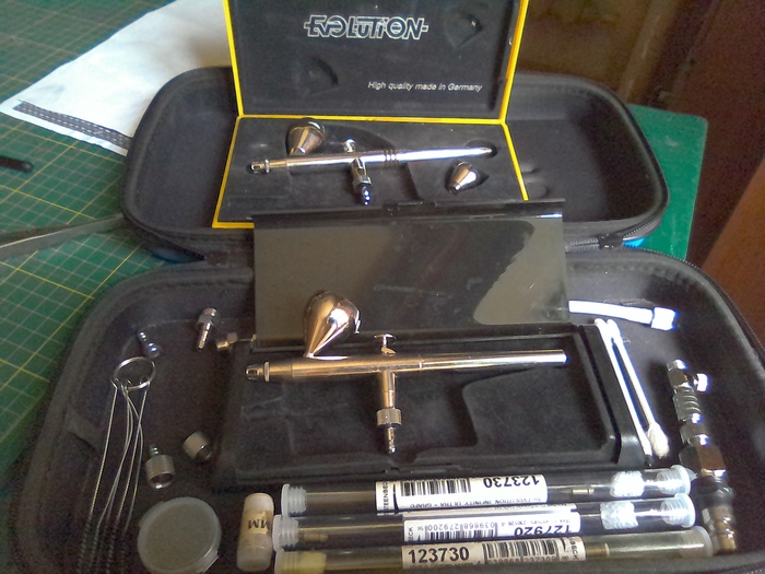 По завершению изготовления модели грунтуются, я использую обычный грунт серый в аэрозолливых баллонах из хоз мага. Финишная покраска проводится аэрографом H$S "ультра" и H$S "эволюшн"(не признаю аерографы из Китая, горький опыт, после немца в жизни не вернусь к "СК" - сраная китайчина). Краску использую фирмы Тамия акриловую, разбавляю изопропиловым спиртом им же промываю аэры.